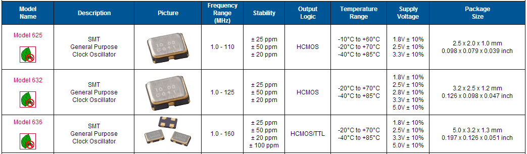 | 頻率公差25℃ | ±20ppm, ±25ppm, ±50 ppm, ±100 ppm | |