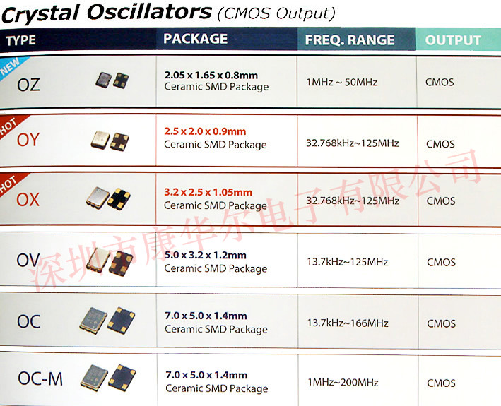 泰藝貼片晶振,OC振蕩器,OC-M有源晶振,小型SMD有源晶振,從最初超大體積到現在的7050mm,6035mm,5032mm,3225mm體積,有著翻天覆地的改變,體積的變小也試產品帶來了更高的穩定性能,接縫密封石英晶體振蕩器,精度高,覆蓋頻率范圍寬的特點,SMD高速自動安裝和高溫回流焊設計,Optionable待機輸出三態輸出功能,電源電壓范圍:1.8V?5 V,高穩定性,低抖動,低功耗,主要應用領域:無線通訊,高端智能手機,平板筆記本WLAN,藍牙,數碼相機,DSL和其他IT產品的晶振應用,三態功能,PC和LCDM等高端數碼領域,符合RoHS/無鉛。主要就用下