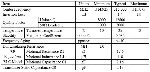 首頁汽車電子產品聲表面濾波器,R315M,導航濾波器