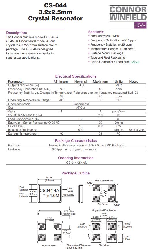 CS-044-054.0M,6G無(wú)線網(wǎng)絡(luò)晶振,ConnorWinfield進(jìn)口晶體參數(shù)表
