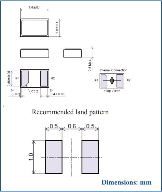 在一個不同擴張系數電路板(環氧玻璃)上焊接石英晶體諧振器產品時,在溫度長時間重復變化時可能導致端子焊接部分發生斷裂,請事先檢查焊接特性.