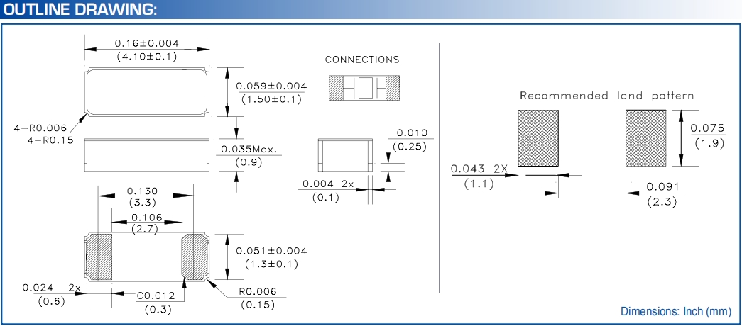 | 激勵功率 | DL | 1.0μW Max. | 推薦:100μW ~ 300μW |