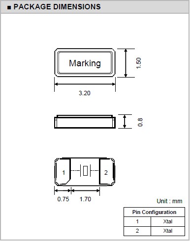 | 激勵功率 | DL | 1.0μW Max. | 推薦:100μW ~ 300μW |