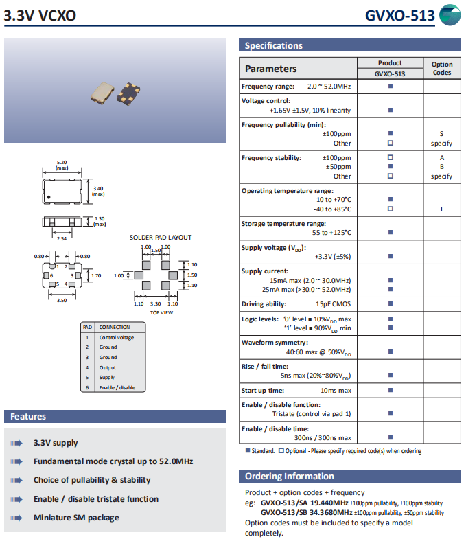 | 型號 | 符號 | GVXO-513 |