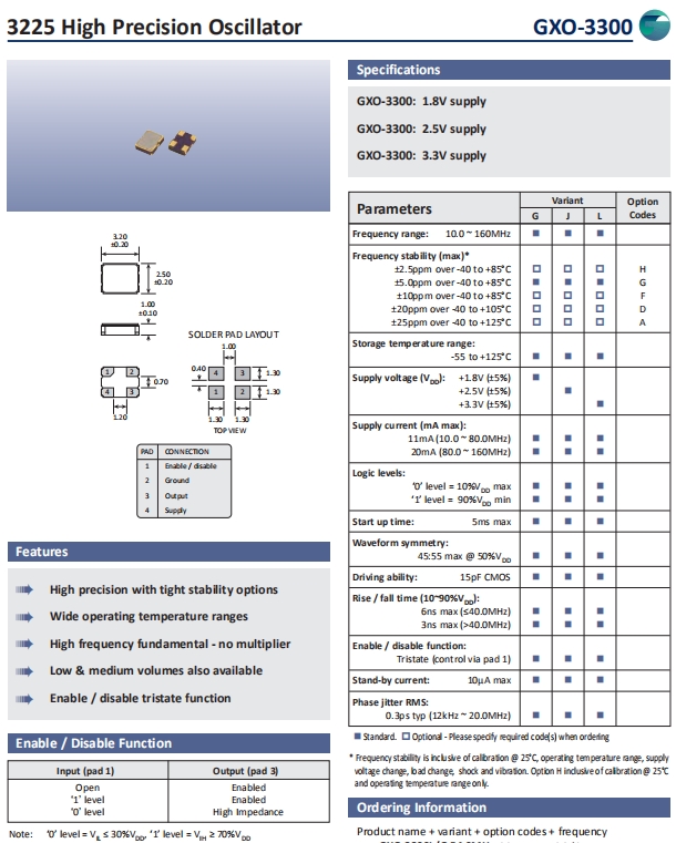 Golledge晶振,GXO-3300晶振,CMOS振蕩器.3225mm體積貼片晶振適用于消費電子領(lǐng)域的表面貼片型石英晶振,本產(chǎn)品已被確定的高信賴性適合用于汽車電子部件,晶體在嚴(yán)酷的環(huán)境條件下也能發(fā)揮穩(wěn)定的起振特性,晶振本身具有耐熱,耐振,耐沖擊等優(yōu)良的耐環(huán)境特性,滿足無鉛焊接的高溫回流溫度曲線要求,符合AEC-Q200認(rèn)證.
