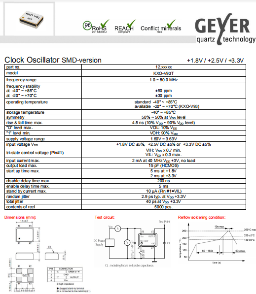 Geyer晶振,KXO-V93T晶振,高質(zhì)量晶體振蕩器.普通貼片石英晶振外觀使用金屬材料封裝的,具有高穩(wěn)定性,高可靠性的石英晶體振蕩器,晶振外觀本身使用金屬封裝,充分的密封性能,可確保其高可靠性,采用編帶包裝,外包裝采用朔膠盤,可在自動貼片機上對應(yīng)自動貼裝等優(yōu)勢
