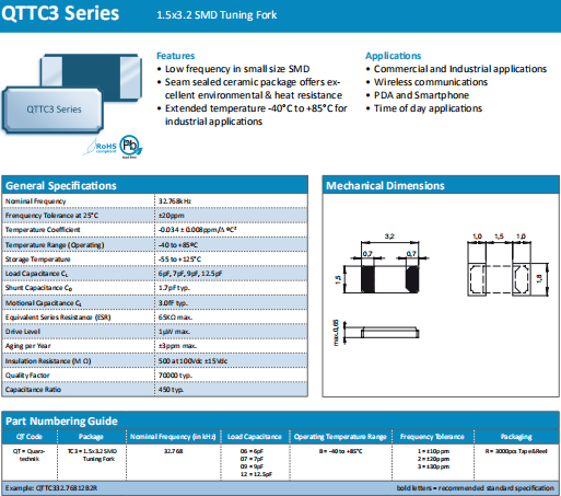 | Quarztechnik晶振 | 單位 | QTTC3晶振 | 石英晶振基本條件 |