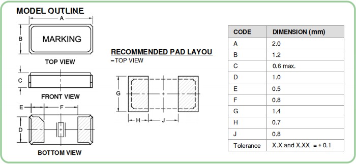 | 頻率溫度特征 | f_tem | ±50× 10-6 /-30°C~+85°C | 超出標(biāo)準(zhǔn)的規(guī)格請(qǐng)聯(lián)系我們. |
