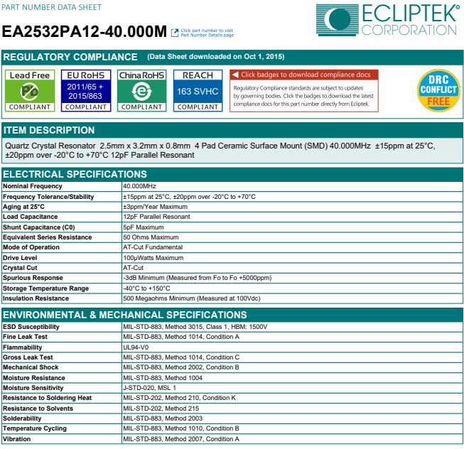 ECLIPTEK晶振將確保其振蕩器和石英晶體諧振器產品及相關設施滿足甚至超出國家的以及地方環保機構的相關法規規定及其他要求,同時該公司盡可能的參與并協助政府機關和其他官方組織從事的環?;顒? 在地方對各項設施的管理責任中,確保滿足方針的目標指標,同時在各種經營與生產活動中完全遵守并符合現行所有標準規范的要求.ECLIPTEK晶振,EA2532PA12-40.000M晶振,3225mm貼片晶振.