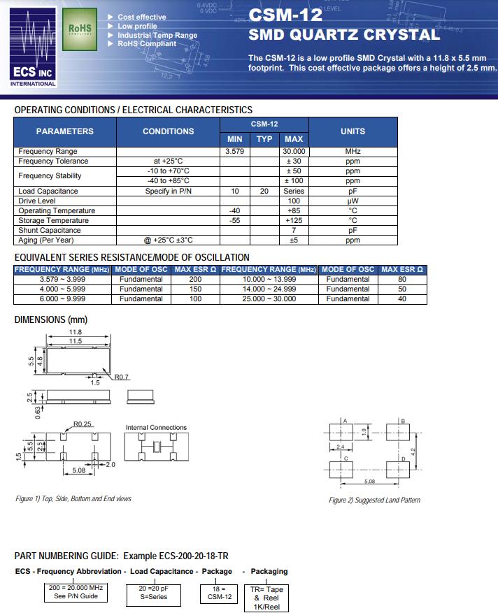 | ECS-200-S-18-TR | CSM-12 | 20MHz | ±30ppm | Series | -40°C ~ 85°C |