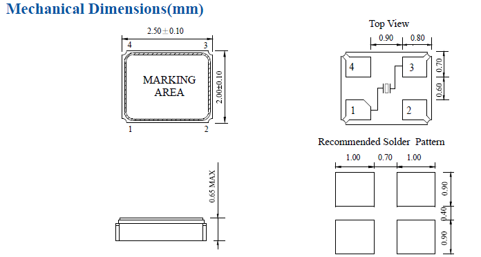 •非常緊湊和薄(2.5*2.0*0.65mm Max)