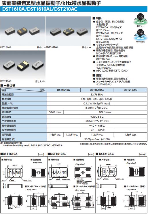 KDS進口晶體,DST1610A石英諧振器,1TJH125DR1A0004晶振,32.768KHz時鐘晶體具有小型,薄型,輕型的貼片晶振表面音叉型晶體振蕩器,產品具有優良的耐熱性,耐環境特性,可發揮晶振優良的電氣特性,符合RoHS規定,滿足無鉛焊接的高溫回流溫度曲線要求,金屬外殼的封裝使得產品在封裝時能發揮比陶瓷振蕩器外殼更好的耐沖擊性.