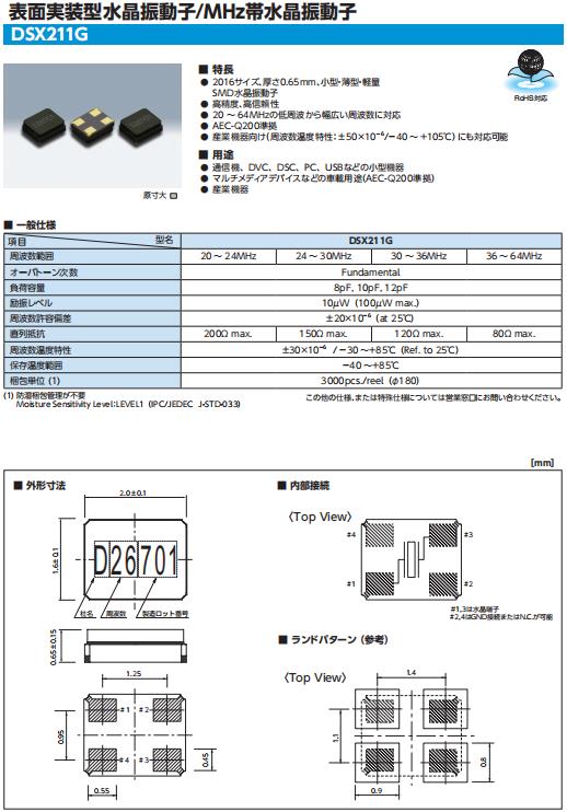 DSX211G陶瓷貼片晶體,KDS晶振,1ZZCAA26000AB0A晶振,貼片晶振本身體積小,超薄型石英晶體振蕩器,特別適用于有目前高速發(fā)展的高端電子數(shù)碼產(chǎn)品,因為晶振本身小型化需求的市場領(lǐng)域,小型,薄型是對應(yīng)陶瓷振蕩器(偏差大)和普通的石英晶體振蕩器(偏差小)的中間領(lǐng)域的一種性價比較出色的產(chǎn)品.產(chǎn)品廣泛用于筆記本電腦,無線電話,衛(wèi)星導(dǎo)航SSD,USB,Blu-ray等用途,符合無鉛焊接的高溫回流焊曲線特性.
