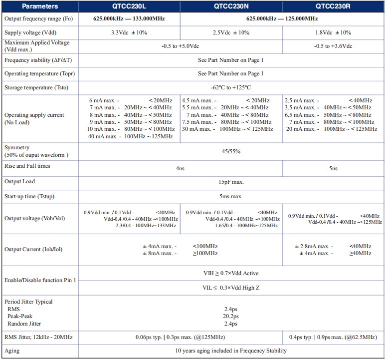 QTCC230LD18-52.000MHz,Q-TECH有源晶振,3225mm石英貼片晶振參數(shù)表