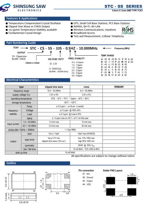 SHINSUNG晶振,STC-SS貼片晶體,STC-CS-SS-33S-0.5HZ-20.000MHz溫補(bǔ)振蕩器,5032mm體積的石英晶體振蕩器,有源晶振,該產(chǎn)品可驅(qū)動2.5V的溫補(bǔ)晶振,壓控晶振,VC-TCXO晶體振蕩器產(chǎn)品,電源電壓的低電耗型,編帶包裝方式,可對應(yīng)自動高速貼片機(jī)自動焊接,及IR回流焊接(無鉛對應(yīng)),為無鉛產(chǎn)品,超小型,質(zhì)地輕.產(chǎn)品被廣泛應(yīng)用到集成電路,程控交換系統(tǒng),無線發(fā)射基站.