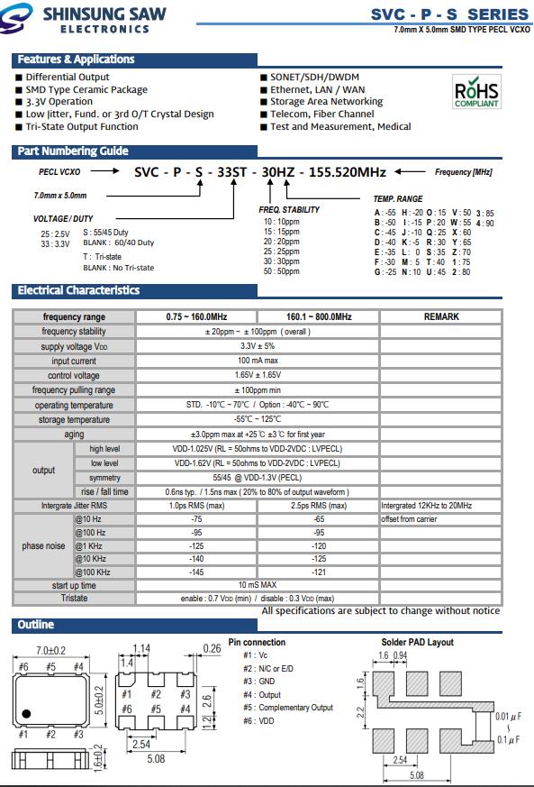 韓國(guó)新松晶振,SVC-P-S有源晶振,SVC-P-S-33ST-30HZ-120.000MHz晶振,小型SMD有源晶振,從最初超大體積到現(xiàn)在的7050mm,6035mm,5032mm,3225mm,2520mm體積,有著翻天覆地的改變,體積的變小也使產(chǎn)品帶來(lái)了更高的穩(wěn)定性能,接縫密封石英晶體振蕩器,精度高,覆蓋頻率范圍寬的特點(diǎn),SMD高速自動(dòng)安裝和高溫回流焊設(shè)計(jì),Optionable待機(jī)輸出三態(tài)輸出功能,電源電壓范圍:1.8V~5V,高穩(wěn)定性,低抖動(dòng),低功耗,主要應(yīng)用領(lǐng)域:無(wú)線通訊,高端智能手機(jī),平板筆記本W(wǎng)LAN,藍(lán)牙,數(shù)碼相機(jī),DSL和其他IT產(chǎn)品的晶振應(yīng)用,三態(tài)功能,PC和LCDM等高端數(shù)碼領(lǐng)域,符合RoHS/無(wú)鉛.