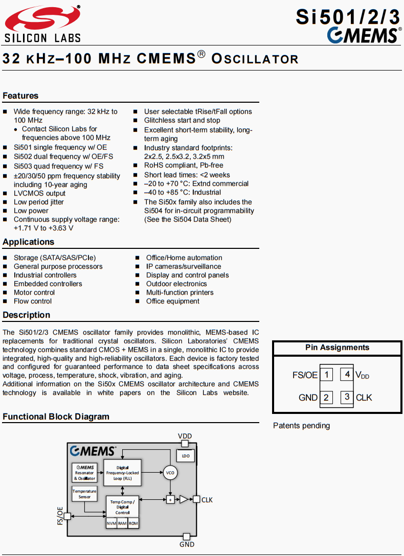 | 501AAA27M0000DAG | Silicon Labs | 27 MHz | LVCMOS | 1.7V ~ 3.6V | ±50ppm | -40°C ~ 85°C |