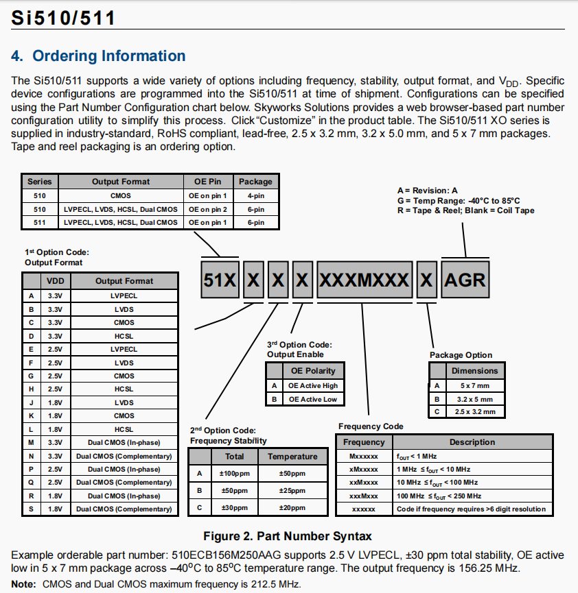 | 511ABA000336AAG | Skyworks晶振 | Si511 | XO | 156.25 MHz | LVPECL | 3.3V | ±25ppm |