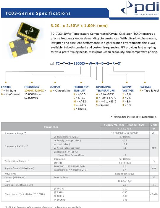 | Supply Current (Maximum) | 10.00000 to 25.999999 MHz | 2.0 | mA |