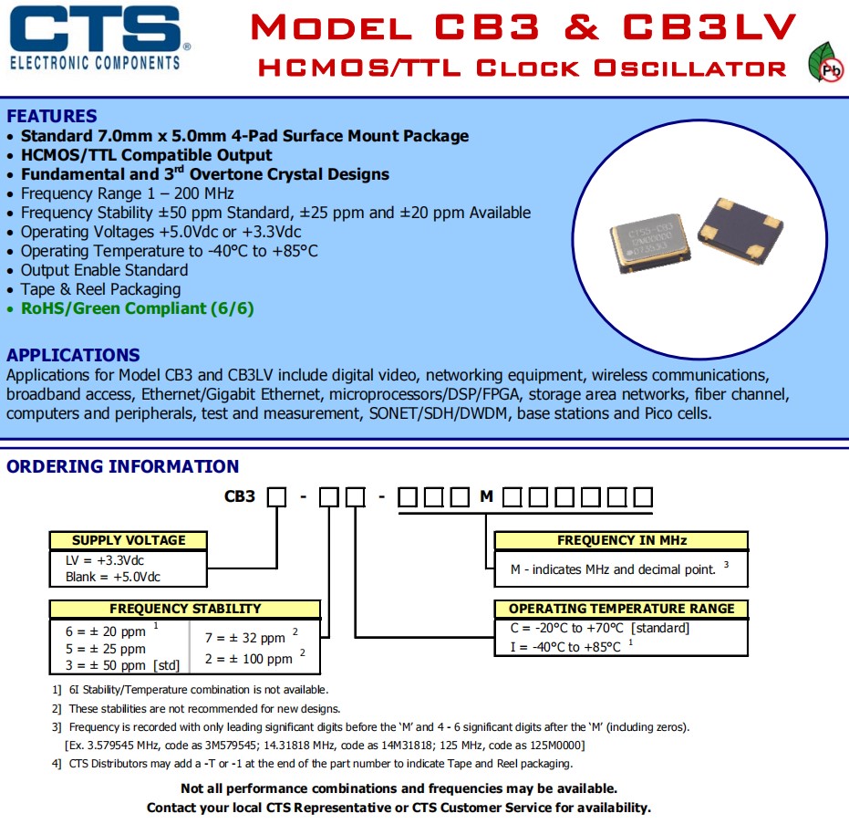 | CB3LV-3C-24M0000 | CTS晶振 | CB3LV | 24MHz | ±50ppm | 4-SMD, No Lead |
