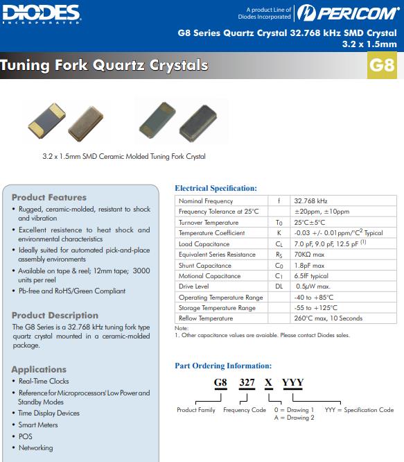 | G83270025 | Diodes晶振 | SaRonix-eCera™ G8 | 32.768kHz | - |