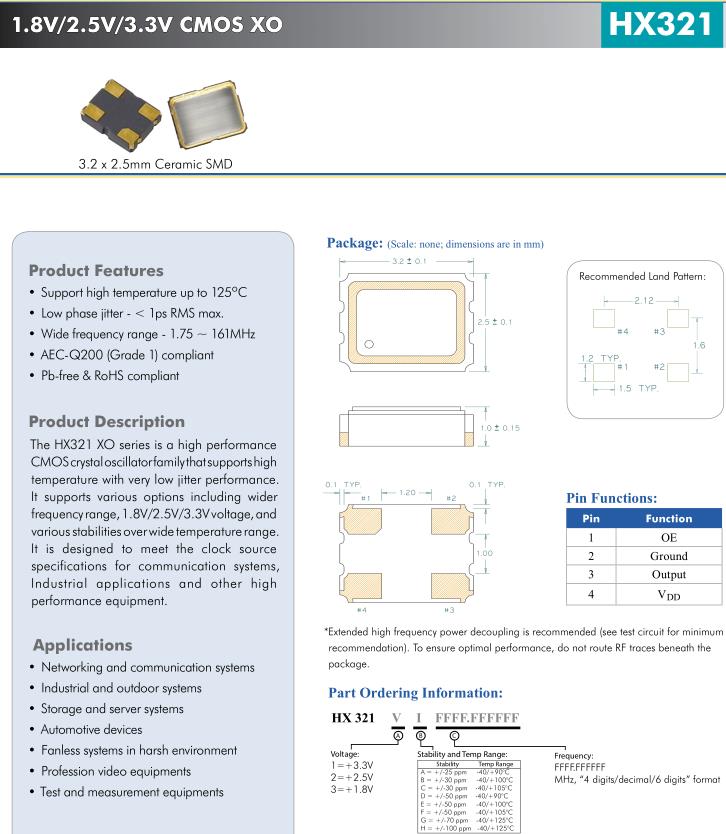 更多>>Diodes編碼HX321VI16.000000很適合應(yīng)用于惡劣環(huán)境下無風扇系統(tǒng),CEERA晶振