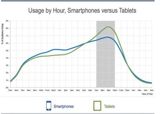 不同時間段智能手機與平板電腦的使用情況