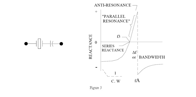 When a crystal is operating at parallel resonance (Fs<Fl<Fa), it looks inductive in the circuit. Thus, function of a load capacitance is very important in selecting the stable point of oscillation. In parallel circuit design, load capacitance CL shall be specified. See Fig. 3