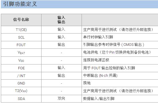 基本性能 時鐘和日歷、報警、定時器、頻率輸出、溫度傳感器與內建電源切換等