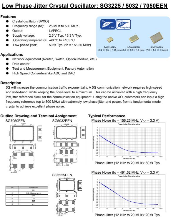 愛普生公司發(fā)布了SG3225EEN,編碼X1G005221000200,晶體振蕩器(SPXO),頻率范圍:25mhz ~ 500mhz,輸出:LVPECL差分晶振,電源電壓:2.5 V/ 3.3 V典型,工作溫度:-40℃~ +105℃,低相位抖動(dòng):50 fs(fo = 156.25 MHz)