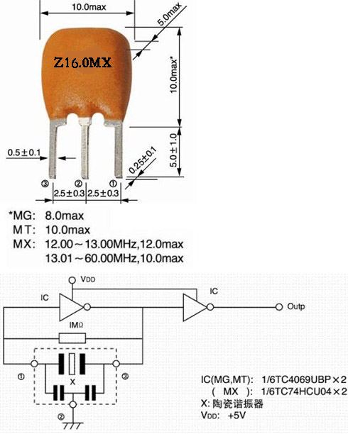 本公司 ZTA陶瓷諧振器,頻率范圍在 2.0MHz 至 60.00 MHz,頻率公差值為 ±0.5%,±0.3%。因 ZTA 陶瓷諧振器是以厚度振蕩的壓電陶瓷,故尺寸會因頻率不同而不同。所有 ZTA 諧振器均用 Epoxy 樹脂包封,可用水洗,帶裝規格亦有提供。