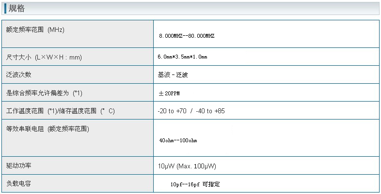 晶振規格