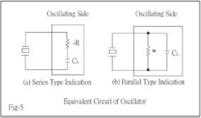 如圖5所示,在石英晶體諧振器用作電感阻抗的振蕩電路中,等效電路可以通過(guò)電感串聯(lián)和電阻的組合來(lái)表示。圖5(a)表示具有串聯(lián)電路的振蕩電路,而(b)表示并聯(lián)電路。