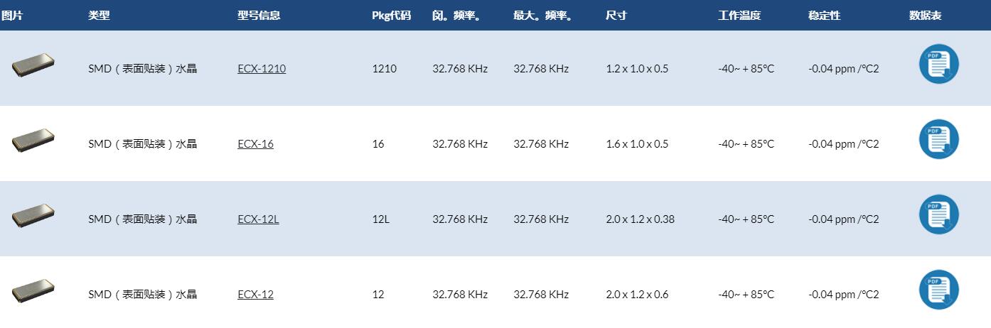ECS貼片KHZ晶振系列原廠(chǎng)代碼表: